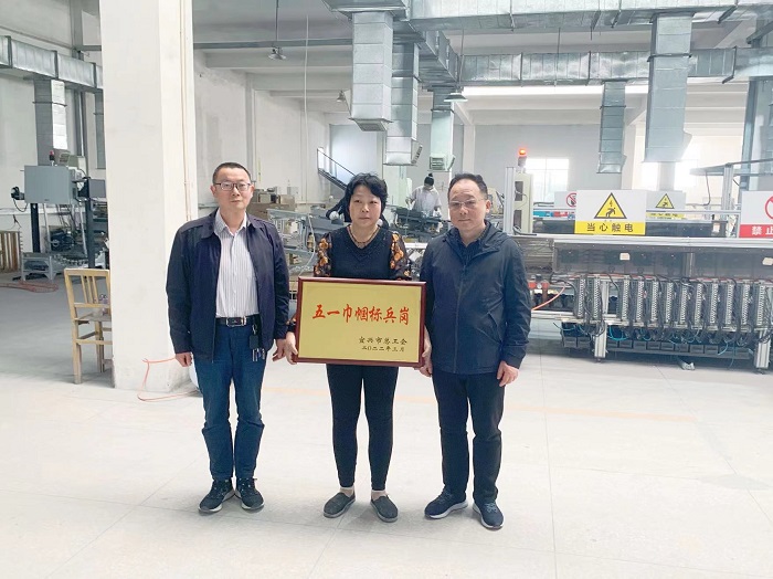 3月15日,我公司功能陶瓷分公司測試班組榮獲宜興市“五一巾幗標(biāo)兵崗”稱號(hào),丁蜀鎮(zhèn)總工會(huì)副主席賈俊強(qiáng)為該測試組授牌。