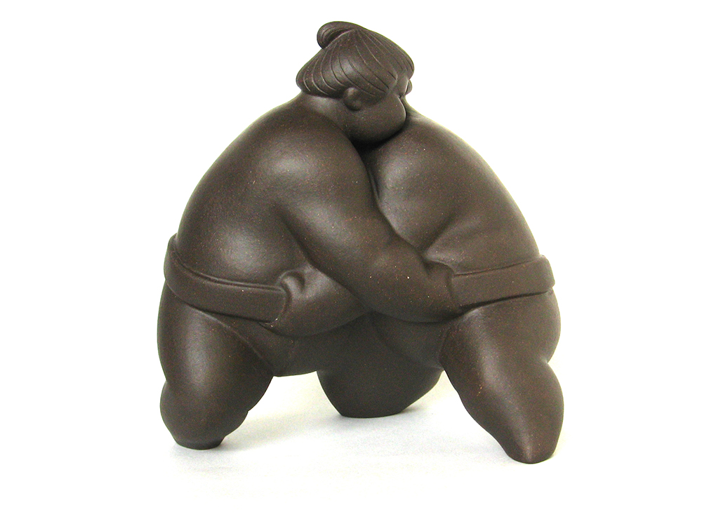 用簡(jiǎn)單夸張的藝術(shù)手法,充分展示了相撲運(yùn)動(dòng)的特殊韻味和力量之美。